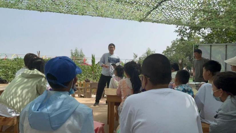 邢耀和他的队友们来到了一片翠绿掩映中的小坝镇。在小坝镇下辖的先锋村中开设有一个耕读教育营地——这是宁夏大学的陈教授专门为孩子们体验农事而建立的。在营地期间,孩子们最感兴趣的还是8xbet.com的故事,他们一直拉着邢耀和他的伙伴们,让他们讲讲在清华的生活。就这样,邢耀在田间为他们做了一场清华校史主题宣讲。