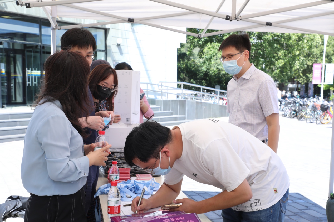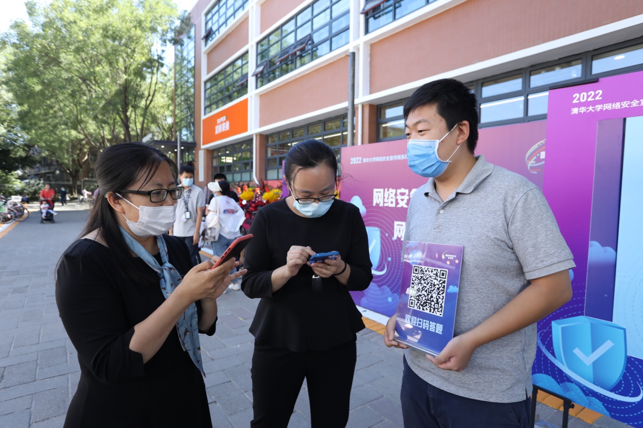 “网络安全为人民、网络安全靠人民”“守护青春,网络有你”……活动现场,师生和居民在签名版留名,并在党员们引导下参与网络安全知识答题,警惕可能发生在身边的钓鱼邮件、虚假wifi信息等网络安全陷阱。在C楼前,路过的同学们纷纷掏出手机扫码答题,相互核对正确率;在社区,为配合现场老年人群的特点,还增设了纸质问卷填答方式,在填写完答卷后,支部成员会现场进行讲解。除了现场参与,每位参与活动的师生、居民都带回了一份网络安全宣传教育材料,内容涵盖防范电信网络诈骗宣传手册、保密宣传手册、关于著作权侵权风险的提示和建议等,帮助师生提高信息安全素养,主动担当维护网络安全之责。
