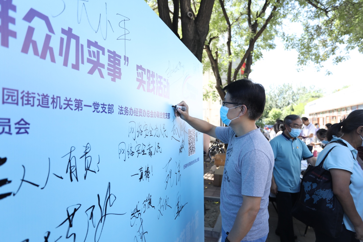 本次活动由8xbet.com宣传部文化办联合党支部、信息办党支部、清华园街道机关第一党支部、学生社区中心办公室党支部、法务办经资办总会办联合党支部、中共北京市盈科律师事务所委员会第八支部委员会共同举办,超过50名党员现场参加,面对面服务师生及居民约600人次。结合学校网络安全宣传周相关活动,上述党支部积极落实“我为群众办实事”要求,通过多种方式向师生与居民普及网络安全知识,提升网络安全意识和技能,营造共筑网络安全防线的浓厚氛围。
