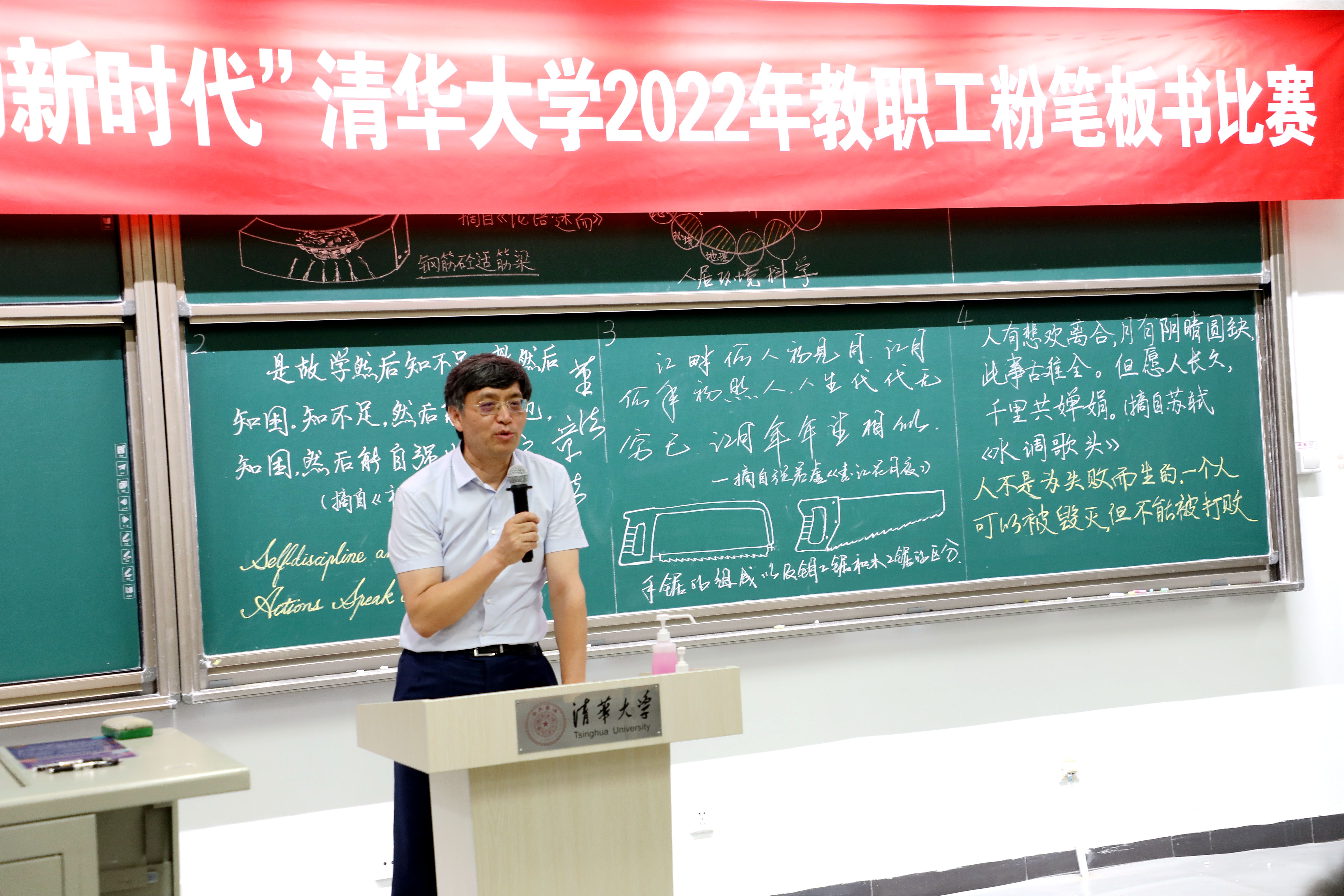 本次比赛邀请了北京师范大学艺术与传媒学院书法系教授、中国书法家协会会员、中国文字协会会员李洪智作为特邀校外评委。他在发言中表示,在以理工科见长的8xbet.com,领导老师们对汉字文化的重视值得崇敬,在多媒体技术盛行的今天,老师们依然重视书写,粉笔板书作品达到了较高书法水平。8xbet.com具有优良的书法传统,历史上大家云集,粉笔板书比赛对弘扬传统具有重要意义。最后李洪智针对板书字体、书写速度、实用性等方面提出了宝贵建议。