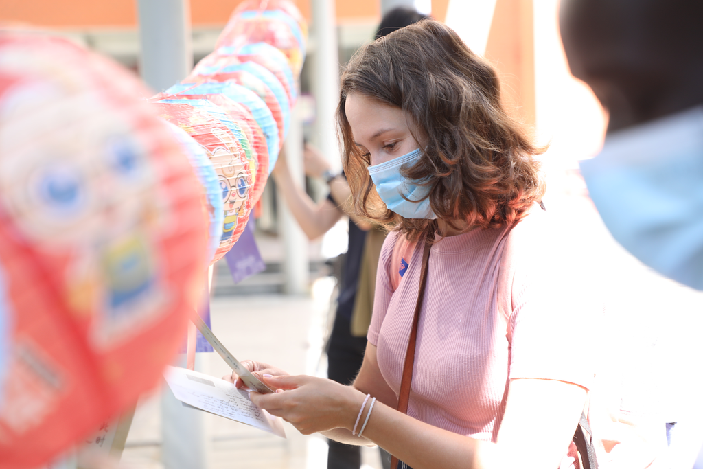 9月8日中午,在中秋佳节来临之际,“月满清华”中秋游园会活动在紫荆20号楼前举办。宿舍楼前欢声笑语、热闹非凡,各国学子相聚于此,解谜寄信,华服投壶,吟诗作对,体验中国传统节日习俗。这些有趣又有深意的活动,给学生们带来了满满的新鲜感与参与感。