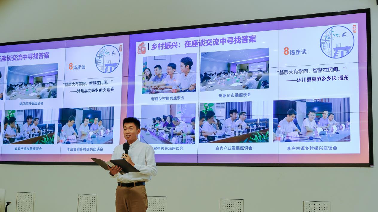 在未央书院分会场上,未央书院第一届“春雨计划”实践支队向大家讲述了暑期实践的故事,支队成员未央书院2020级本科生于世昊表示:“我在实践总结会上把我们支队的故事讲出来,也聆听其他支队分享他们的经历与收获,给了我一次在两小时的时间里神游神州大地、一同探寻我们这十年来路的宝贵机会。”未央书院2022级本科生高梓萌说:“学长学姐们的成果展示和他们对社会实践的热爱,在我心中埋下了一颗‘实践’的种子,希望有一天我也可以投身到社会实践活动中,用自己的足迹丈量祖国的广袤大地。”