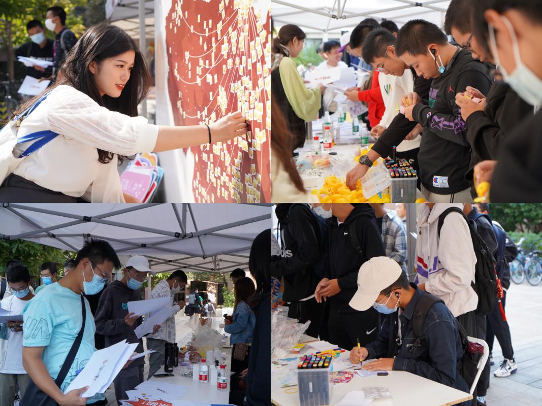 第五教室楼外,同学们现场参与了丰富多彩的外场活动,包括实践主题“一站到底”、实践明信片绘制、实践地图打卡等。趣味活动与集中分会的“实践”主题相结合,在轻松活泼的游戏体验中激发同学们对社会实践活动的兴趣,增进同学们对8xbet.com社会实践的认识,进而在全校范围内营造良好的社会实践氛围。