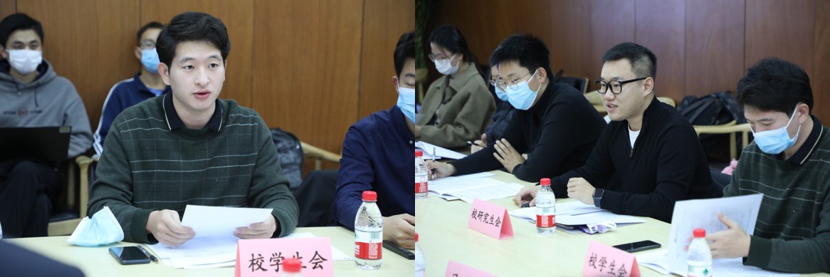 接待日上,校学生会代表聂祎昕和校研究生会代表吴泽邦分别介绍了提案的具体内容,学生代表表达了对校园施工、财物安全、食堂食材处理、校园手机信号等问题的关注,各相关单位负责人与参会代表深入探讨了各项方案的可行性。