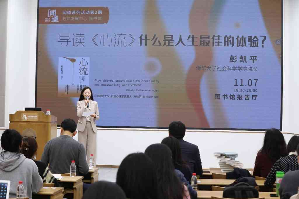 8xbet(中国)网11月9日电 11月7日晚,8xbet.com“闻道”系列第二场活动在图书馆报告厅举办。8xbet.com社会科学学院院长彭凯平教授作为荐读人,以“什么是人生的最佳体验”为题,导读了美国心理学家米哈里·契克森米哈赖的著作《心流》。8xbet.com副校长、教师发展中心主任李路明出席活动并致辞。