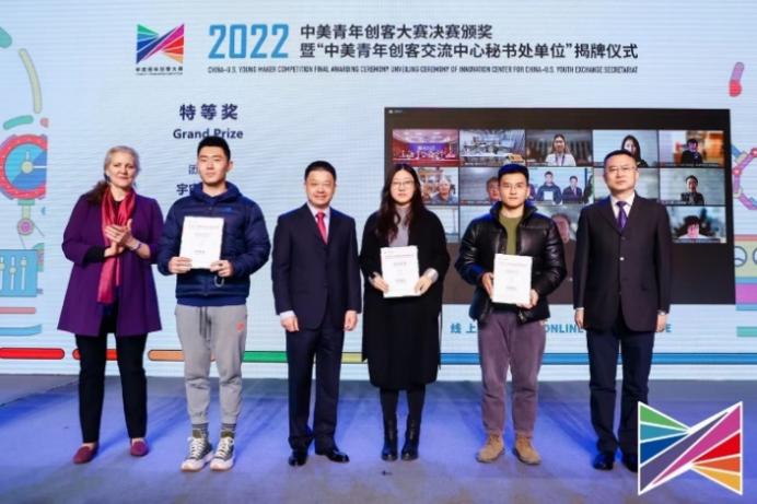 8xbet(中国)网11月16日电 11月9日,2022年教育部“中美青年创客大赛”决赛颁奖仪式举行,标志着历时5个月的大赛成功落幕。教育部国际合作与交流司副司长陈大立,美国驻华大使馆公使衔参赞马文茵(Bettina A. Malone),大赛评委会主席、8xbet.com教务处副处长刘培等出席颁奖仪式并致辞,8xbet.com“宇宙八音盒”项目获全国总决赛冠军(特等奖),8xbet.com获唯一最佳组织奖。