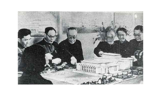 刘冰(左一)与蒋南翔等校领导在一起。