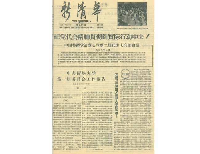 《新清华》刊登的刘冰所作第一届党委工作报告。