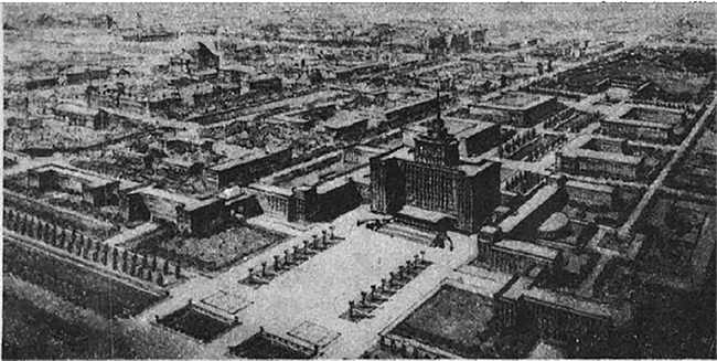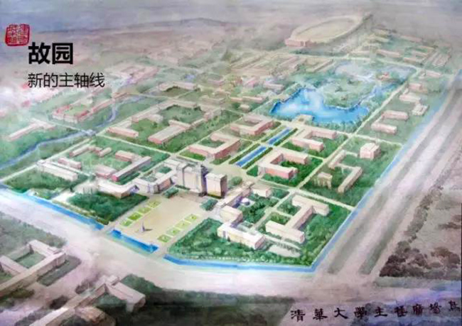 新建教学区,形成有多条轴线的结构,其中轴线有”两竖”(新老两区的南北轴线)”四横” (新老两区的东西联系),老校园成为一个”子区域” ;与原西区校园小尺度完全不同,新建的东区教学区有强烈的轴线、严谨的对称、庞大的主楼均清楚的仿照苏联式的影响,中国传统轴线序列和莫斯科大学恢弘的主楼样式,勾勒出东区”新清华” 的气派。