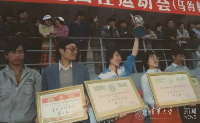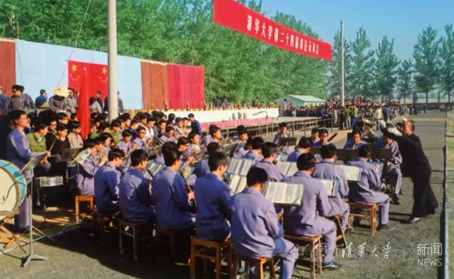 1981年,恰逢70周年校庆,清华学生军乐队在第24届田径运动会开幕式上演奏。