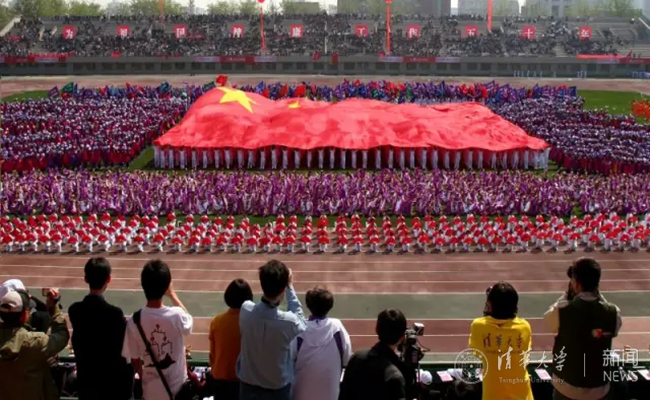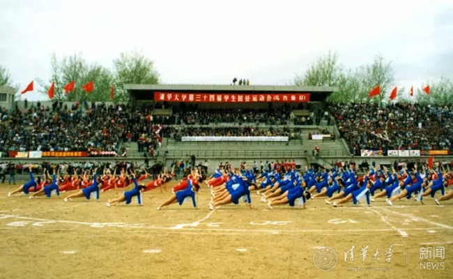 2001年,来到90周年校庆,第44届学生田径运动会(马约翰杯)开幕式团体操表演。