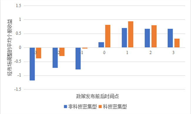 从企业科技属性类型来看,非科技密集型公司政策出台前的跌幅较大,但政策出台后涨幅较小。而科技型企业政策出台前跌幅较小,出台后的涨幅更为强烈,股价表现更好。