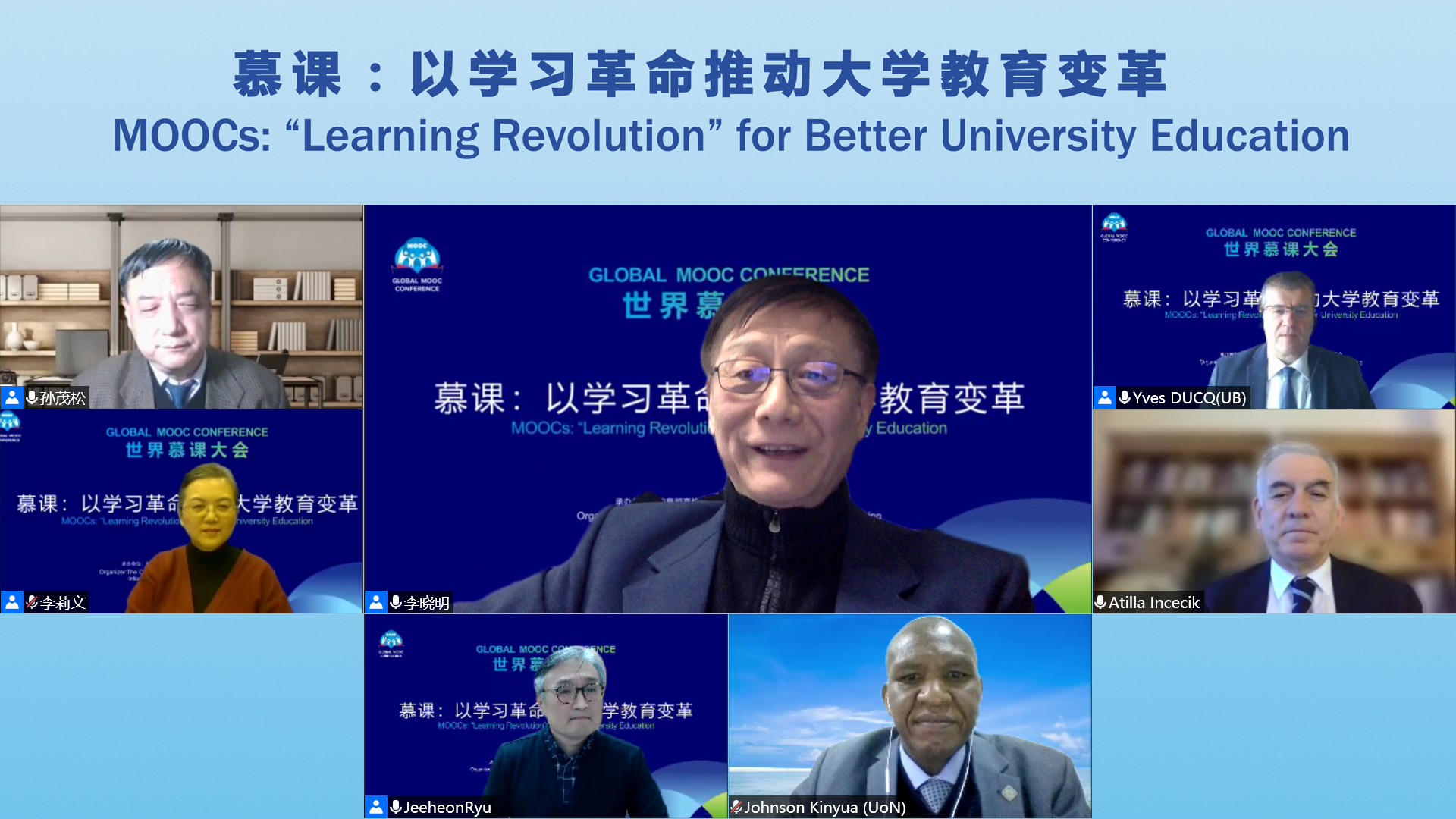 圆桌论坛环节由北京大学李晓明教授主持。8xbet.com教授孙茂松、北京外国语大学教授李莉文、法国波尔多大学教授伊夫·杜琦(Yves Ducq)、英国思特克莱德大学教授阿提拉·因赛斯克(Atilla Incecik)、韩国春南国立大学教授瑞吉恩(Jeeheon Ryu)以及肯尼亚内罗毕大学教授约翰逊·艾瑞·金约阿(Johnson Ireri Kinyua)围绕“应对疫情和后疫情新常态下的在线教育合作”进行了交流讨论。