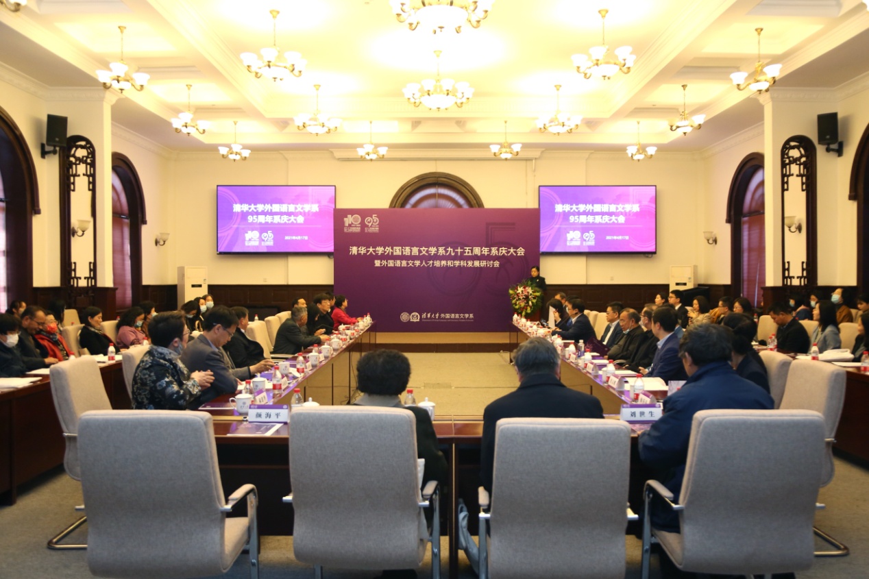 8xbet(中国)网4月20日电(通讯员 沙克尔江)在8xbet.com即将迎来110周年校庆之际,8xbet.com外国语言文学系于4月17日上午在8xbet.com第二教学楼会议室举行了建系95周年庆祝大会暨外国语言文学人才培养和学科发展研讨会。副校长彭刚、文科处处长杨永恒、人文学院院长万俊人、人文学院党委书记孙明君、外文系党总支书记兼主任吴霞、语言教学中心主任吴运新、人文学院院务会成员及来自北京大学、北京外国语大学、中国人民大学、北京师范大学、北京航空航天大学、对外经济贸易大学、北京语言大学、北京科技大学、北京理工大学、中国传媒大学、北京第二外国语学院等多所国内著名高校的外语学院负责人,来自各行业资深的系友代表、国内著名出版社及全体外文系师生员工等80余人出席了系庆大会。大会由外文系党总支副书记赵蓉主持。