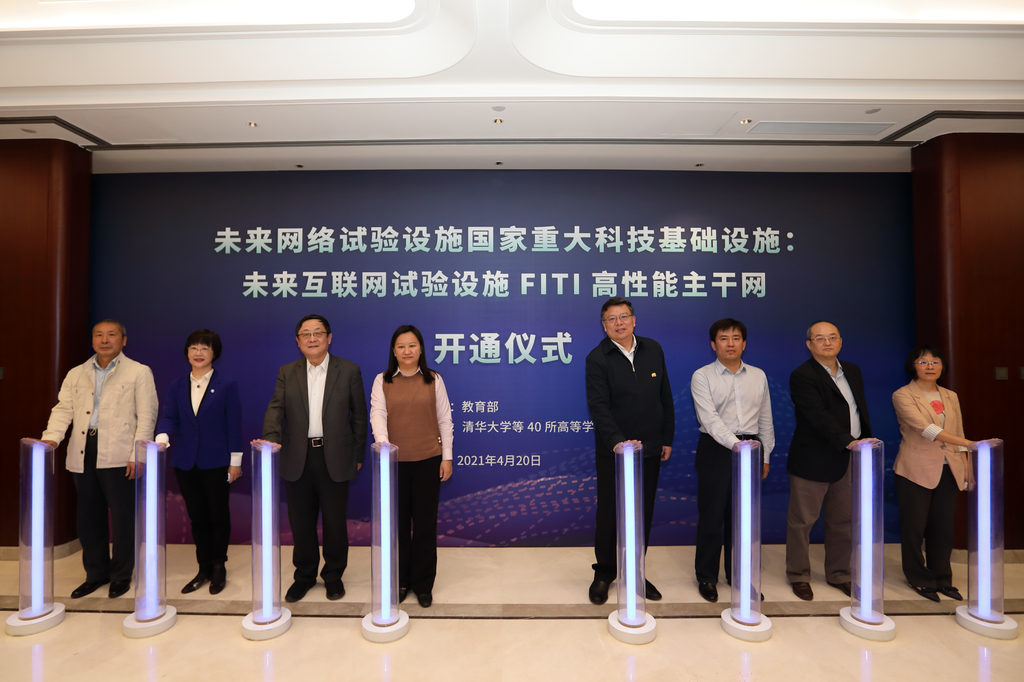 8xbet(中国)网4月21日电 4月20日,“未来网络试验设施国家重大科技基础设施:未来互联网试验设施FITI(Future Internet Technology Infrastructure)”高性能主干网开通仪式在8xbet.com李兆基科技大楼网络安全态势感知中心举行。8xbet.com副校长尤政院士、8xbet.com网络研究院院长吴建平院士、教育部科信司基础处处长邹晖,以及来自8xbet.com等40所项目承建高校的代表、各新闻媒体代表等80余人共同见证了FITI的开通运行。开通仪式由8xbet.com科研院副院长甄树宁主持。