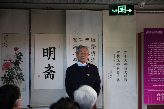 胡显章宣布书画展开展。他说,习近平总书记视察清华第一站就是美术学院,凸显了对美育的重视。“美”在学习、生活中都不可缺少,社科学院师生书画展为清华110周年校庆、迎接建党100周年打造了一道美丽的风景线。学院领导班子集体参加开幕式显示了院党政领导对党史学习教育和学院文化建设的重视。书画展已经成为社科学院一个有传统的品牌,也为党建工作、离退休工作、关工委工作搭建了文化平台,希望活动持续做好,不断扩展影响力,影响越来越多的青年学子承继国家的文化瑰宝,为师生思政工作、校园文化建设多作贡献。