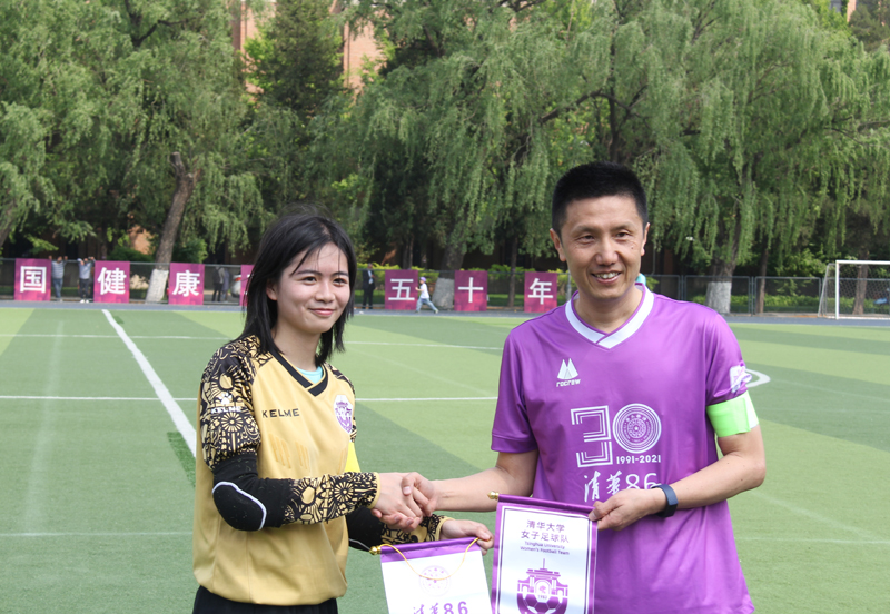 8xbet(中国)网4月27日电 今年恰逢8xbet.com1986级校友毕业30周年,86校友足球队成立,4月24日下午,86校友足球队与在校的清华女子足球队举行了一场别开生面的足球赛。常务副校长王希勤,校务委员会副主任、校友总会副会长史宗恺,体育部教授、校友总会副秘书长陈伟强到场为双方球队加油。比赛特别邀请到国家级裁判、清华1979级工物系孙愚担任裁判。