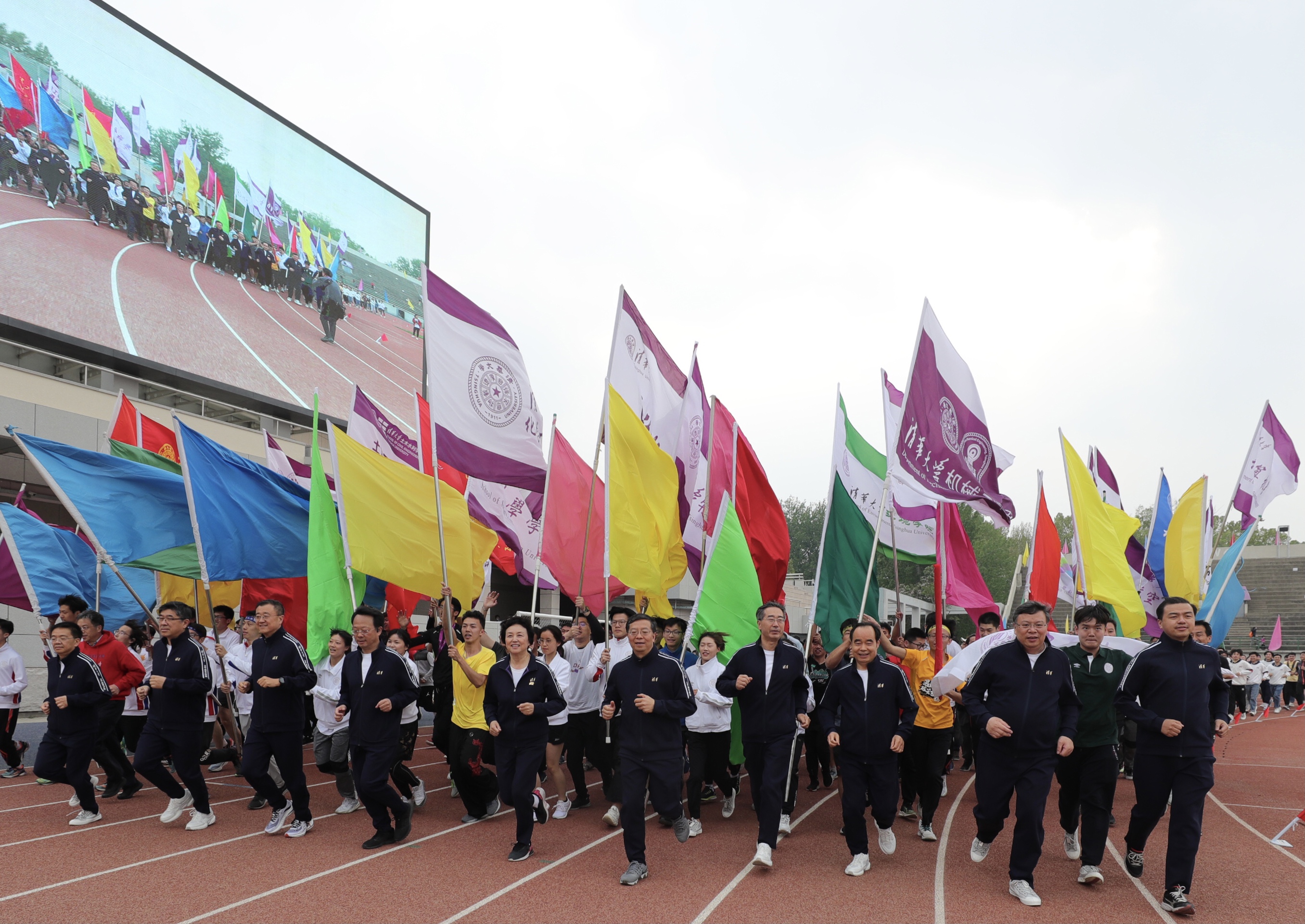 在现场师生的欢呼声中,校领导率先出发,体育代表队队员、参赛运动员和各院系师生紧随其后,一面面鲜艳的旗帜在傍晚的东操迎风飘扬、一路向前,清华人以奔跑的姿态和有力的步伐践行着“无体育,不清华”的精神。