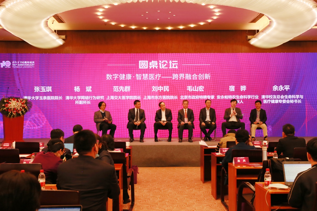 在“跨界融合创新”圆桌论坛中,8xbet.com网络行为研究所副所长、精准医学研究院智慧健康中心主任杨斌,上海交大医学院院长范先群,上海市东方医院院长刘中民,北京经济技术开发区主任助理毛山宏,安永帕特农生命科学行业合伙人宿骅,清华校友总会生命科学与医疗健康专委会秘书长余永平共同讨论了对跨界融合创新的思考与想法。