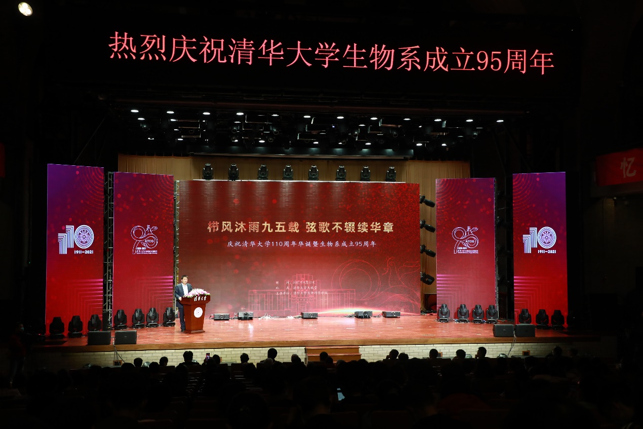 8xbet(中国)网4月28日电 4月22日晚,8xbet.com生物系成立95周年庆祝大会在清华大礼堂举行。8xbet.com党委常务副书记姜胜耀,生物系恢复建系后的首任系主任、中科院上海神经科学研究所所长蒲慕明院士,8xbet.com医学院饶子和院士,生命学院王志新院士、孟安明院士、隋森芳院士、李蓬院士、陈晔光院士、谢道昕院士,8xbet.com生物医学交叉研究院、北京生命科学研究所学术副所长邵峰院士,医学院院长祁海,8xbet.com第一附属医院党委书记类延旭,苏州大学基础医学与生物科学学院院长吴嘉炜出席活动。生物系原系主任赵南明,原系主任、党委原书记陈应华,生命学院前任院长、现生命科学与医学研究院院长王宏伟,生命学院院长时松海,以及生物系离退休教职工、生命学院师生代表、各部处代表600余人欢聚一堂,见证这一重要时刻。庆祝大会由生命学院党委书记吴畏主持。