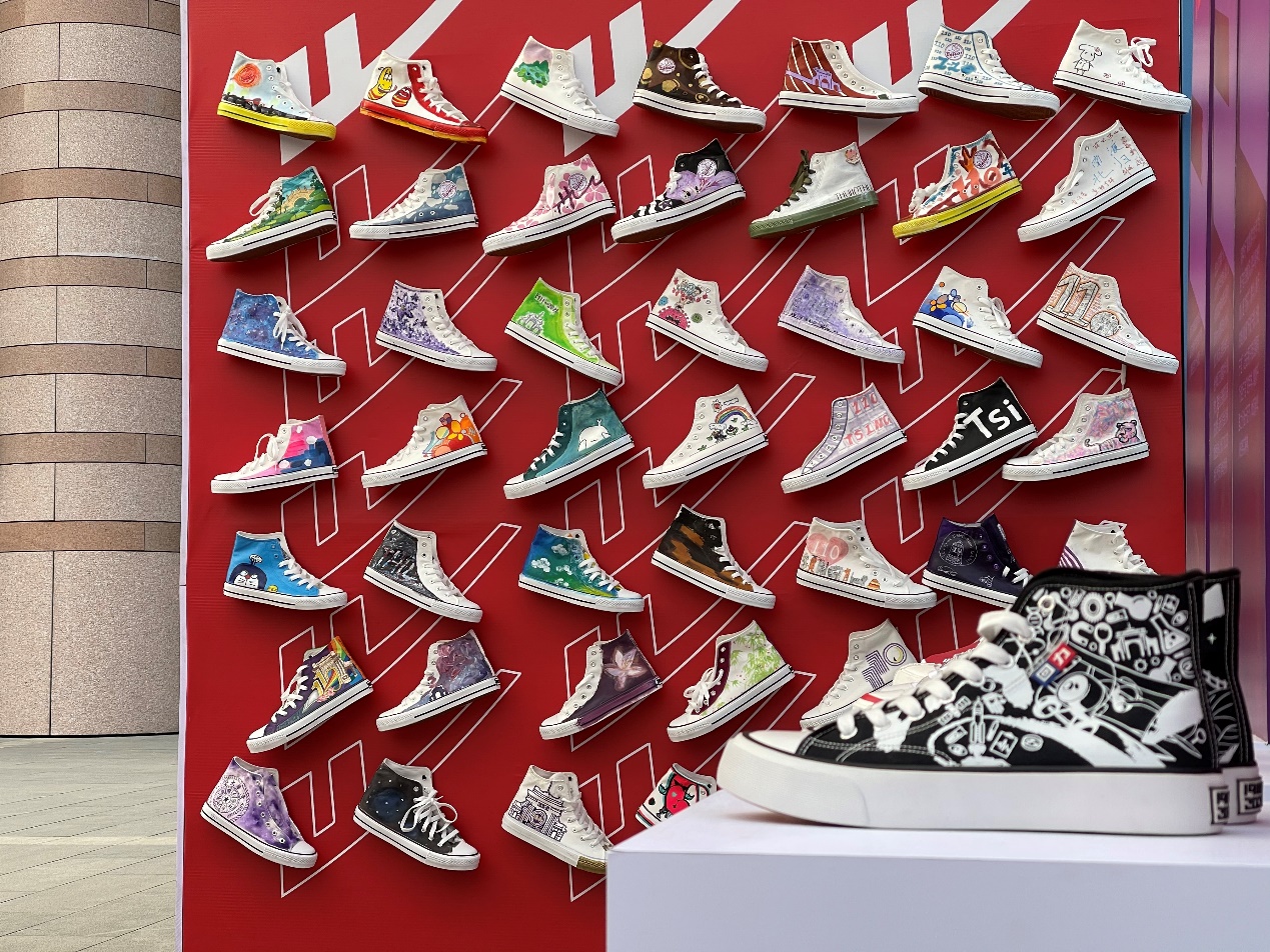 由清华师生、校友子女手绘涂鸦创作的回力经典小白鞋涂鸦展