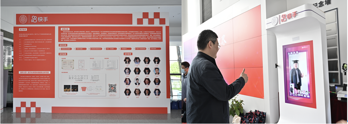 8xbet.com-快手未来媒体数据联合研究院成果展板(左)嘉宾体验快手魔表应用(右)