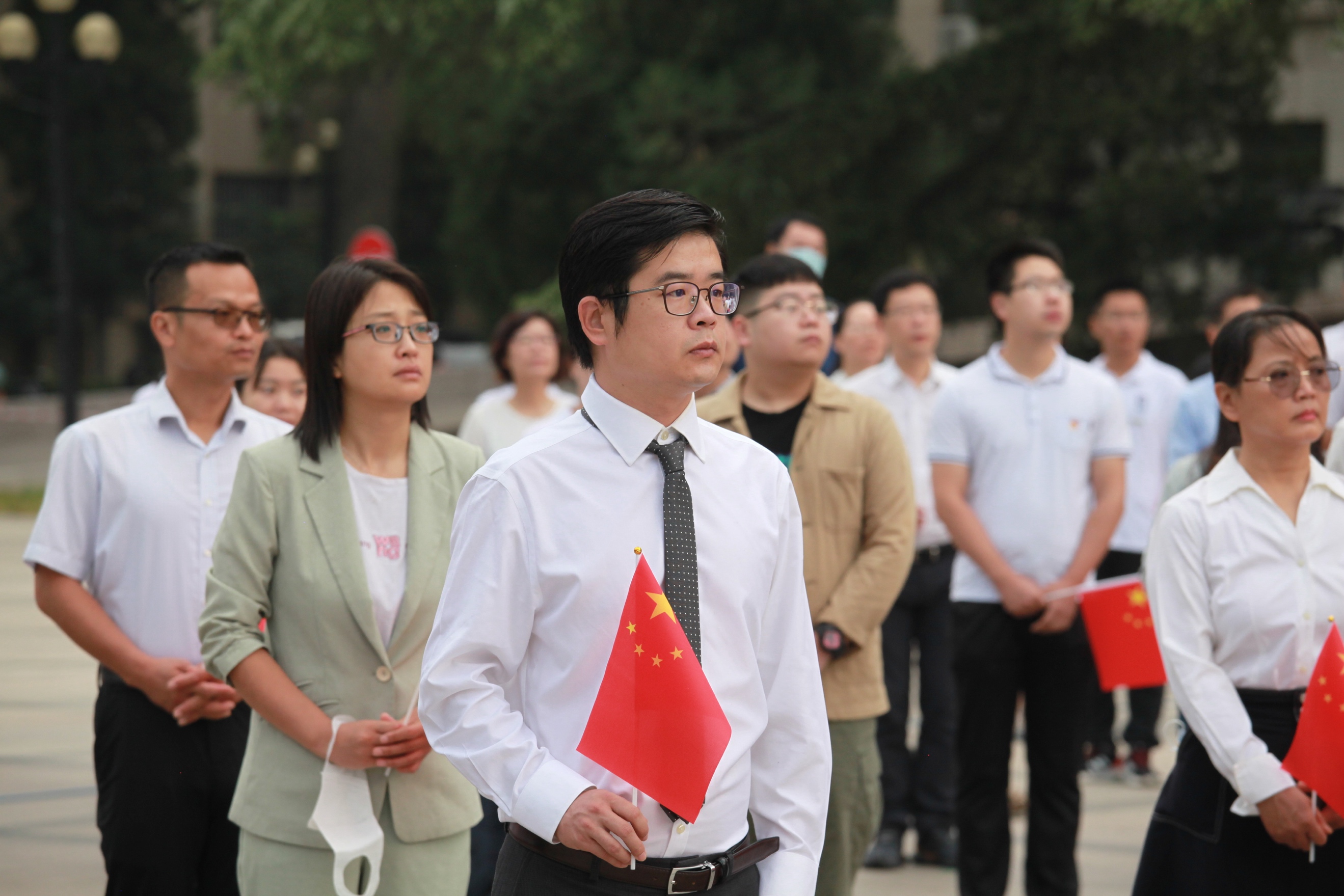 抗疫一线科研人员代表参加升旗仪式