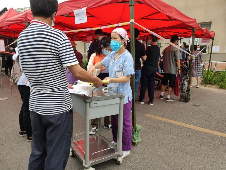 16日,紧急派出7名医护人员支援北京地坛医院。院内为满足大量民众“愿检尽检”新冠核酸筛查需求,正式开放新冠核酸筛查预约服务。