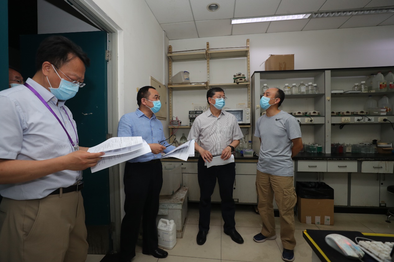 在医学楼,邱勇详细了解了生命学院和医学院学生返校人数、交通安排、返校及进入楼宇的申请审批流程、实验室设备安全、楼宇消毒通风、防疫物资筹备等情况。邱勇指出,要将实验室安全保障工作与疫情防控工作同步推进,构筑实验室安全严密防线,落实落细各项防疫措施,全力保障师生安全。