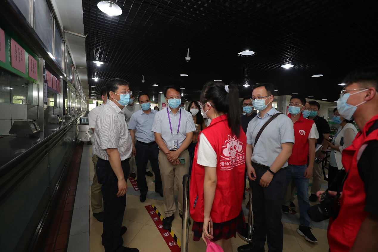 邱勇一行先后来到医学楼、伟伦楼、紫荆园食堂和紫荆公寓学生服务中心(C楼),检查疫情防控情况、学生返校准备工作以及相关应急演练工作。