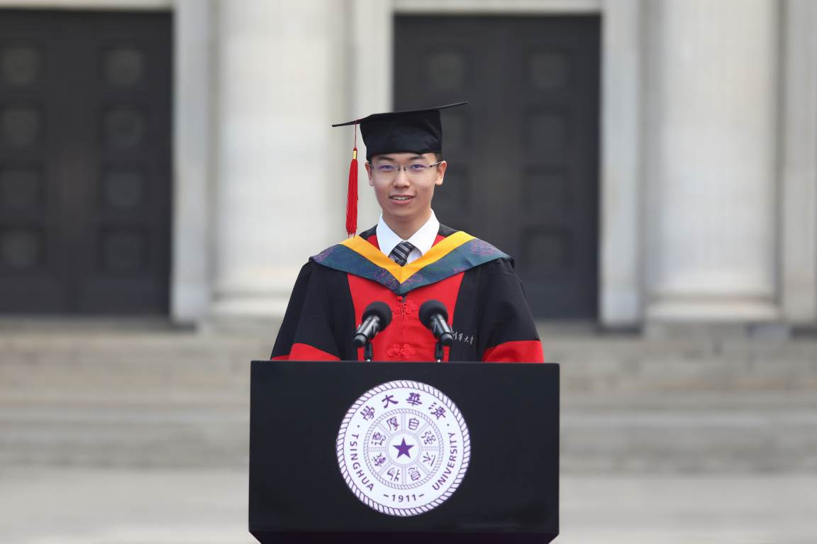 毕业生代表、电子系2015级博士生孙跃在发言中感谢母校、师长一路以来的支持。他结合自己的科研和社会实践经历,分享了对“联接世界”的思考和感悟。在未知的领域探索前沿、到未知的国度遇见友谊、和未知的万物遇见未来,孙悦希望能在联接世界中遇见未来,怀着对美好世界的共同期许,不懈奋斗!