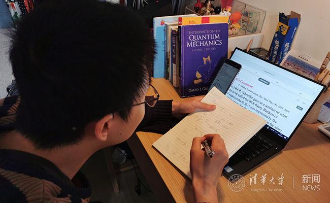 家住在北京校外的物理系博士生黄又佳,本科是清华电子系,物理基础还需要加强,这次也选修了这门课。“我觉得知识内容的接受上没有太大区别,课堂的录音会存下来,不懂的地方还可以回头反复听,这点比传统的课堂好;另外,传统课堂同学们都不好意思当面打断老师提问,现在大家都在网上随时提问,两位老师还特意安排在每周六会有一次讨论课,真的是太棒了!张先生与胡老师共同开课,这‘很清华’!” 黄又佳说。