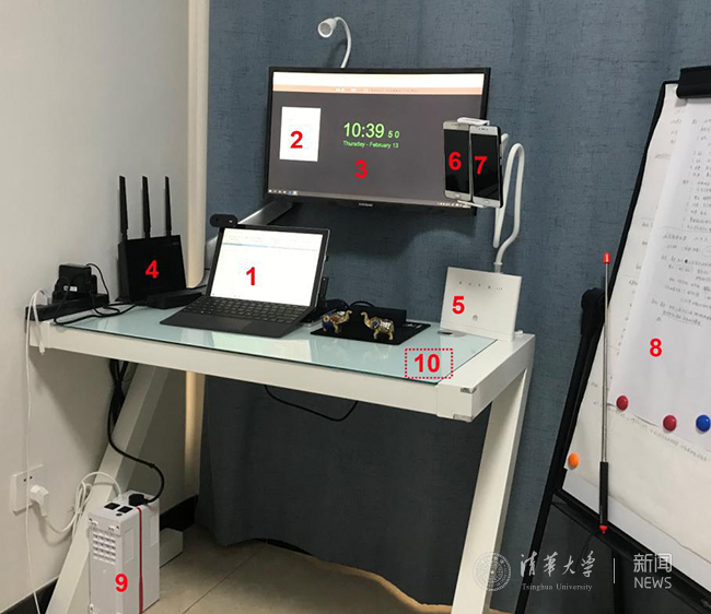 ——如何确保高质量授课?连日来,软件学院副教授杨铮开始探索居家工作环境的改造升级,亮出“十大神器”! 手机、平板电脑、笔记本电脑、实物白板、高性能Wi-Fi路由器, 4G路由器、超大字体时间提示器、不间断电源、定时器等等“齐上阵”。“不能说万无一失,但有10大‘神器’护法,无论是断电、断网、硬件崩溃、软件崩溃,都不能阻挡我一颗上课的心!”杨铮说。
