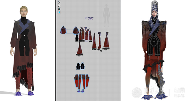 服装系大四的马莎莎通过与视传系的张瑞琪合作的方式进行毕业设计的制作,她们通过3D建模的方式,在线上进行场景搭建和服装综合效果展示视频的制作,马莎莎说:“3D建模的技术相当完善了,与实物相比,应该不会打折扣,所以最后应该会比较好地呈现我的设计想法和效果。”