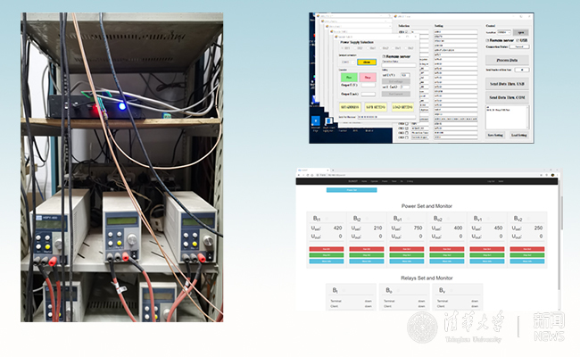 实验人员可以通过网络安全便利地实现远程控制。SUNIS由6组储能电容阵列供电,磁场、加热功率与平衡等实验参数均与这些电容阵列的充电电压有关。科研人员可以访问控制服务器提供的网页,远程设置电容的充电电压以及充电电流。上位机上运行的VB.net监控程序接收参数,然后通过RS-232接口将参数传递给可编程电源,完成远程操控的全过程。