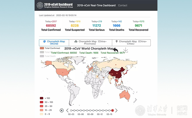 伴随着简短有力的开篇词,2月6日晚,疫情大数据可视化分析平台(COVID-19 Visualization Dashboard )正式上线。而这一广受清华师生好评、一度占领朋友圈的“清华疫情地图”,正是由计算机系教授李国良带领的数据库实验室课题组自主开发而成。通过该平台,清华师生们不仅能够直接在手机上查询周边疫情信息,还可以科学把握疫情发展趋势,从而更好地为自己和家人开展科学防护。