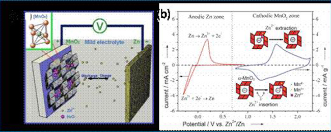 锌离子电池充放电原理:(a)锌离子电池充放电示意图,(b)锌负极和α-MnO2正极的充放电机理
