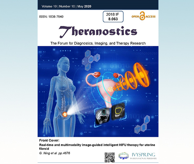 8xbet(中国)网4月23日电 近日,8xbet.com医学院生物医学工程系国家特聘专家廖洪恩教授课题组在国际著名学术期刊《诊疗》(Theranostics: 2018 IF=8.063)上发表题为“实时多模态图像引导的子宫肌瘤智能型高能聚焦超声治疗”(Real-time and multimodality image-guided intelligent HIFU therapy for uterine fibroid)的学术论文,并被选为该杂志5月份的正封面论文(图1)。