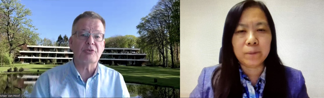 杨森疫苗&预防有限责任公司Johan Van Hoof博士(左)、国家药品监督管理局药品审评中心高晨燕部长(右)作报告