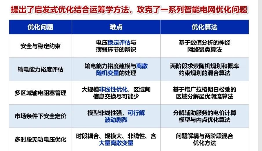 1. 发现了含约束网络元件的等价映射规律,提出了改进最优潮流乘子方法,解决了经典算法难以收敛的难题,为重大工程问题的解决提供了理论支撑。