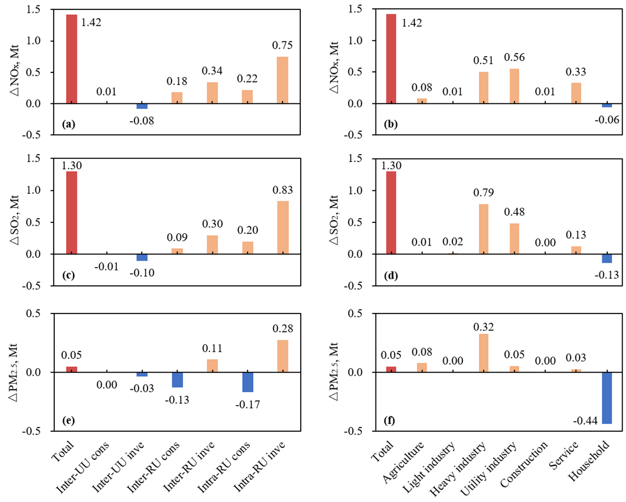 目前我国正在积极进行大气污染治理,并以重点区域城市群(如京津冀“2+26”城市)为主要着力点。与此同时,我国城镇化发展迅速,伴随着大规模的农村至城市以及城市之间的人口迁移。由于农村与城市居民的生活方式、消费水平差异较大,人口迁移将对我国的大气污染物排放总量及空间分布造成影响,对未来的进一步减排带来挑战。针对这一实际问题,本研究利用排放清单和投入产出模型计算了城乡人均直接生活排放以及隐含在消费和投资中的间接排放,结合30个省市自治区之间的流动人口矩阵,计算了人口迁移对各省、各部门排放的影响。