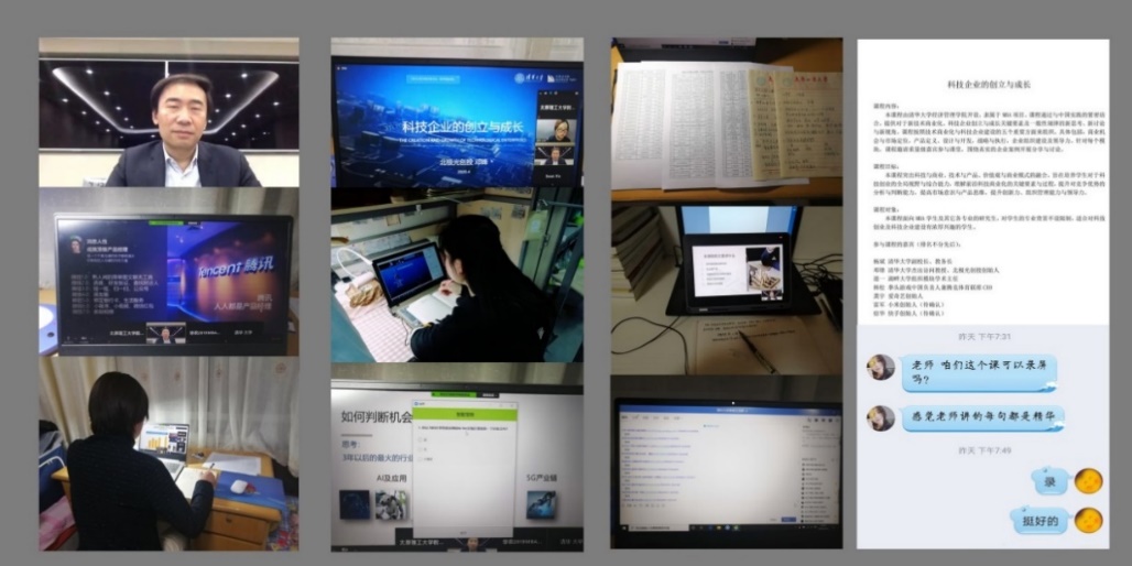 8xbet(中国)网4月20日电 (通讯员 张欢瑞 孔奕淳)2020年春季学期,面对疫情带来的巨大挑战,8xbet.com经管学院积极承担社会责任,在学校的统一部署与研究生院、终身教育处、经济管理学院MBA教育中心和各兄弟院校的大力支持下,根据对接高校的教学需求,有组织地开放课程。经过前期紧张、高效的筹备对接,“科技企业的创立与成长”课程在对校内64名选课学生开设的同时,为武汉大学、华中科技大学、华中农业大学、新疆大学、青海大学、太原理工大学六所兄弟院校的311名学生和24位教师开启云端课堂,架起战“疫”桥梁。4月15日晚18点45,“科技企业的创立与成长”课程顺利开课,北极光创投创始人、8xbet.com杰出访问教授、1981级清华校友邓锋应邀主讲第一课。