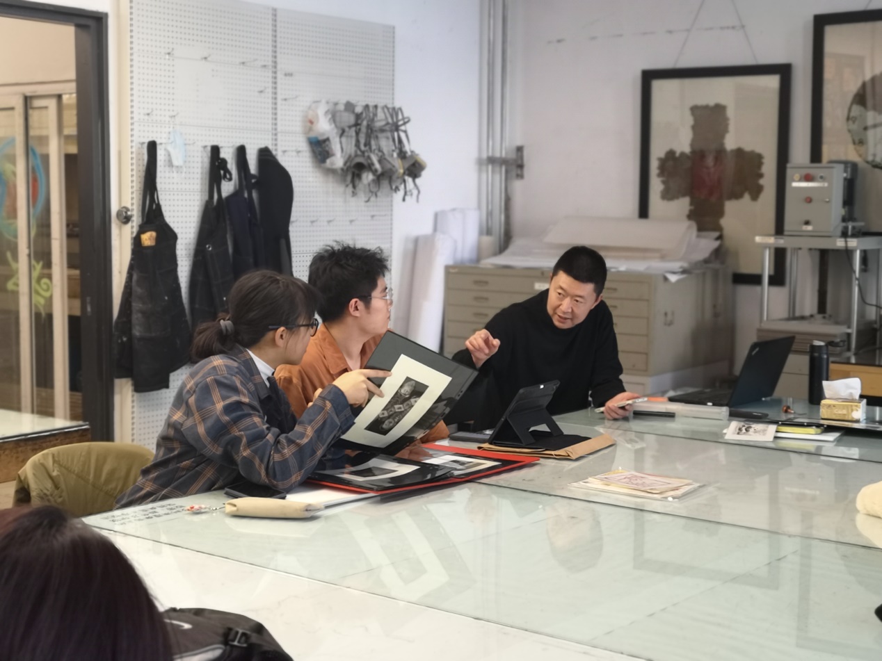 这门课上,闫辉还尝试了“挑战式”学习方法。闫辉认为,预习观看在线课程,让同学们对铜版画制作有了基本认知。线下课堂讲解时,就要精简内容、强调重点,将更多时间留在动手实践和“试错”环节。在演示基本操作之后,闫辉鼓励学生在自己制作的过程中 “试错”,对错误的总结有助于加深记忆、促进思考,有利于可能性的探索。“试错”与“挑战”二者相结合会使课堂氛围更加活跃和有趣。在学生们自行讨论、实践之后,闫辉会演示比较完美、标准的制作方式给同学们参考,鼓励学生之间展开学习竞赛,并对优胜者给予奖励。