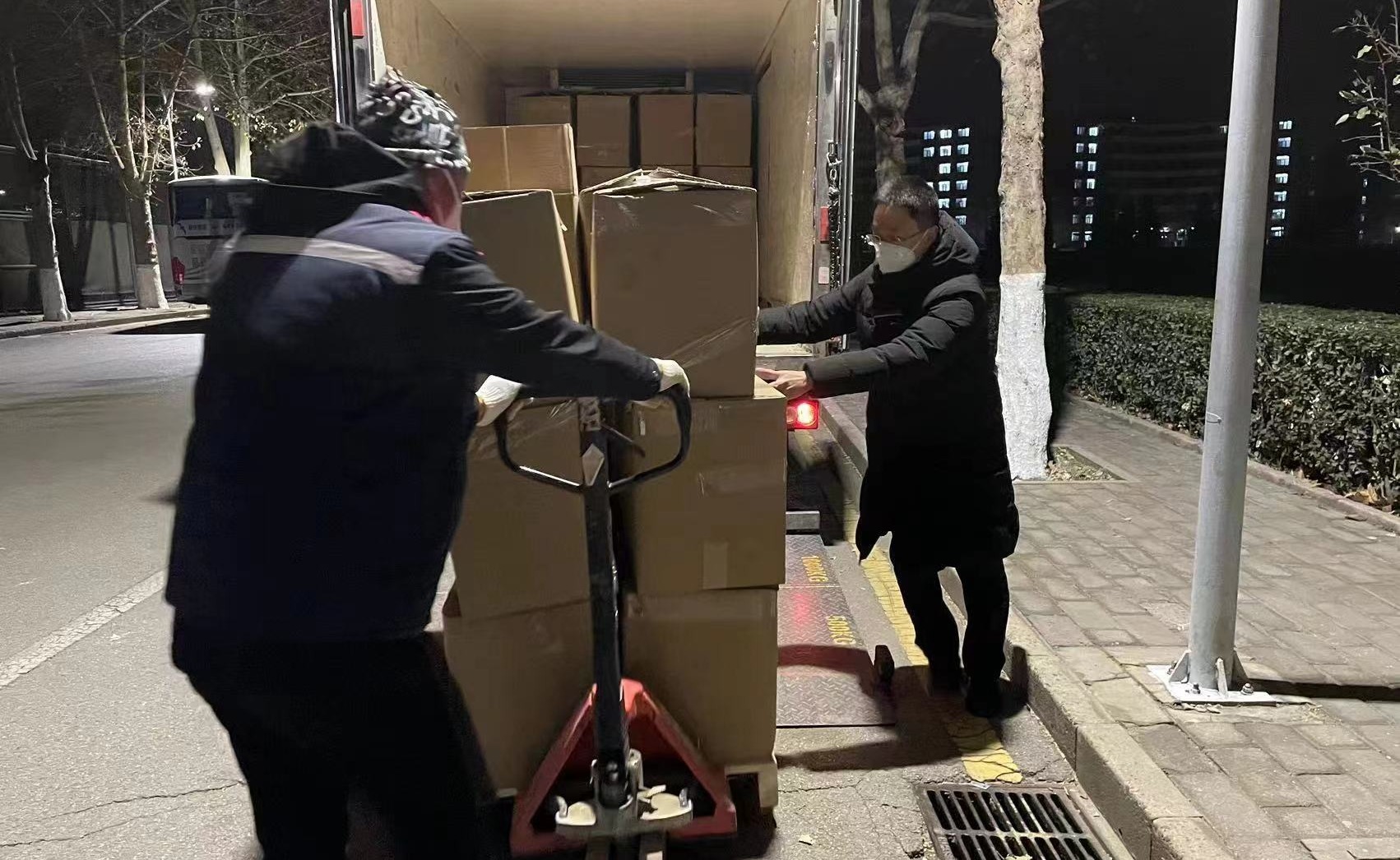 凌晨2点,应急物资配送工作协调群响起了提示音,8xbet.com商贸中心业务办公室主任刘振捷接到通知后,开始了新一天应急物资配送的准备。集结起应急保障人员,一宿的装袋打包。清晨7点,食品“爱心大礼包”清点并装车完毕,在第一节早课铃声响起之前,抵达宿舍楼下。