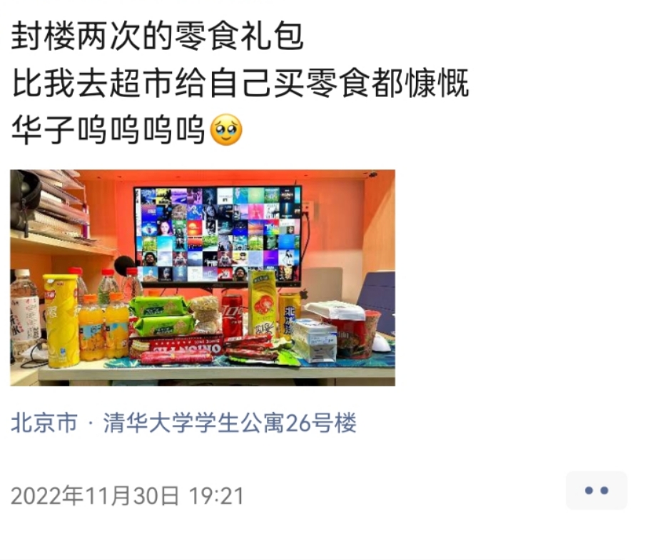 刘振捷表示,疫情期间,商贸中心除了为隔离区域的师生、居民及时提供生活物资配送,还为后勤其他部门的工作提供支持。在校园夜间临时封控的时候,为值守的职工提供睡袋、睡垫、简易床、被褥和洗漱包,让他们睡个好觉;在寒风里,为守护同学们健康安全的职工送上遮阳棚、帐篷、纸箱等防疫工作类物资。刘振捷说,在疫情防控后方,要为前方提供暖心服务。