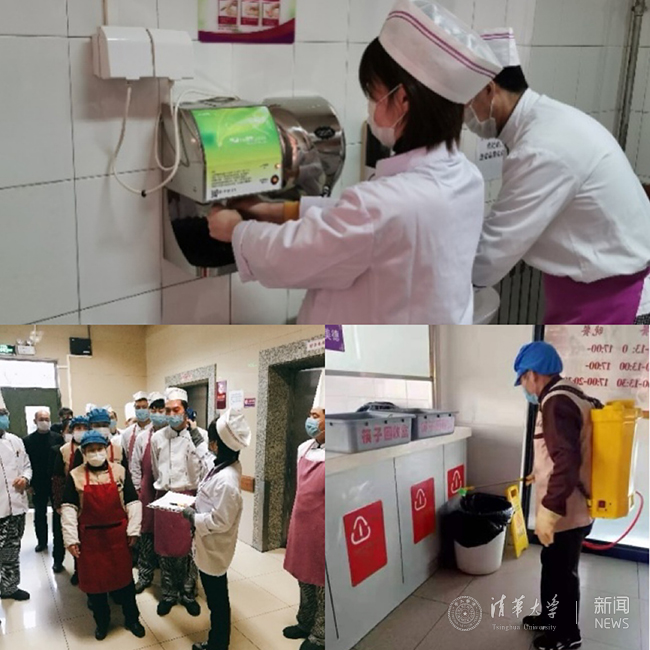 其次,餐前对就餐环境尤其餐桌椅、门把手、扶手等部位开展专项消毒并公示。洗碗间实施专项消毒。加强工作服、工用具、送餐车等消毒管理。检查人员洗手情况。每天保持空气流通,定时开窗通风。