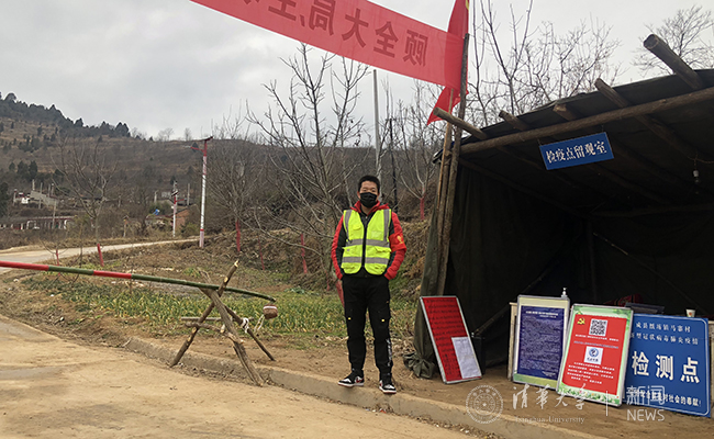 社科博182的苏波波的家乡在甘肃省成县纸坊镇。他也志愿参与了疫情防控监督工作。尽管天气寒冷,在监测点他穿着厚厚的棉袄,迎着西北风,配合着工作人员,一丝不苟地对每一位来往人员进行体温检测。