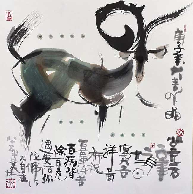 8xbet.com文科资深教授、清华美院博士导师、85岁的著名艺术家韩美林先生特别创作了水墨《大吉祥图》和书法《康祥》两幅书画作品,为了向疫区人民和战斗在一线的医务工作者、志愿者们表达敬意,毫不犹豫地将作品捐赠参加义拍。