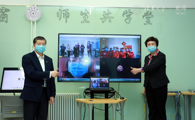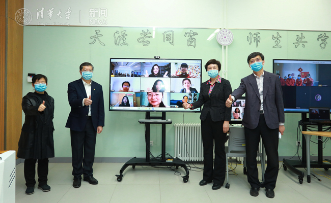 随后,校领导与驰援武汉的北京清华长庚医院医疗队的11名医护工作者视频连线,向他们致以节日的祝福与问候——在他们中间,有9位是女同胞。