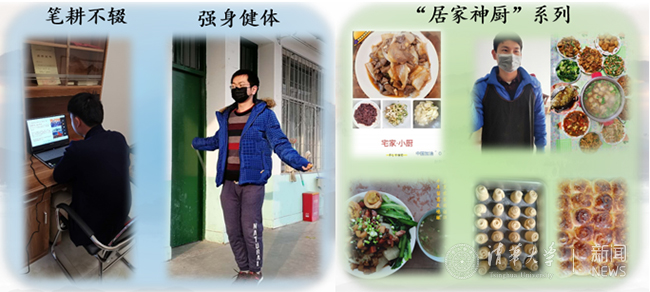 虽然此次疫情给国家和社会的生产生活造成诸多不利影响,但同学们依然保持着积极向上的学习和生活态度,规律作息、积极锻炼、施展厨艺,在家中开展学习和科研活动。